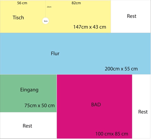 Die Laufrichtung ergab sich perfekt bei uns. Ein wenig Glück gehabt. 200cm x 180cm reichten.