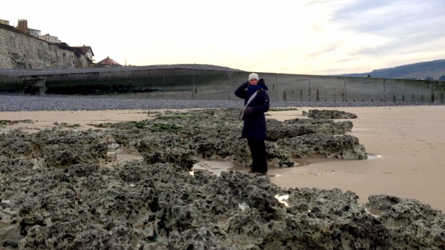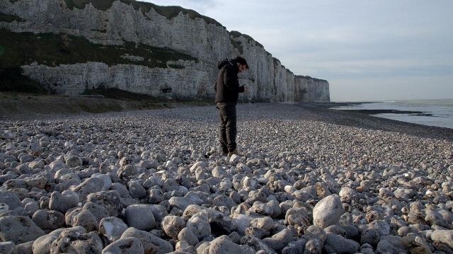 Hier gibt es noch mehr Sonne, wenn auch ein paar Wolken dazukommen. Und Platz am Strand spazieren zu gehen. Das passiert allerdings nicht flotten Schrittes. Man muss a) schauen wo man hintritt, da der steinüberzogene Boden sehr uneben ist und b) schauen, was sich lohnt mitzunehmen.