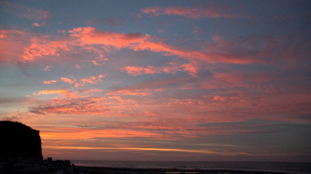 Soweit so gut. Leider stellen wir nach 5 min fest, dass zu dieser Jahreszeit die Sonne schon um 12 Uhr mittags auf nimmer wiedersehn hinter den mächtigen Klippen verschwindet. Dafür ist uns die geliebte seltene Sonne gerade zu schade. Wir krabbeln einen kurzen Spaziergang staunend über den Steine-Strand. Sooo viele tolle Steine – und gefühlt jeder zweite mit Loch! Die Taschen sind schnell voll!