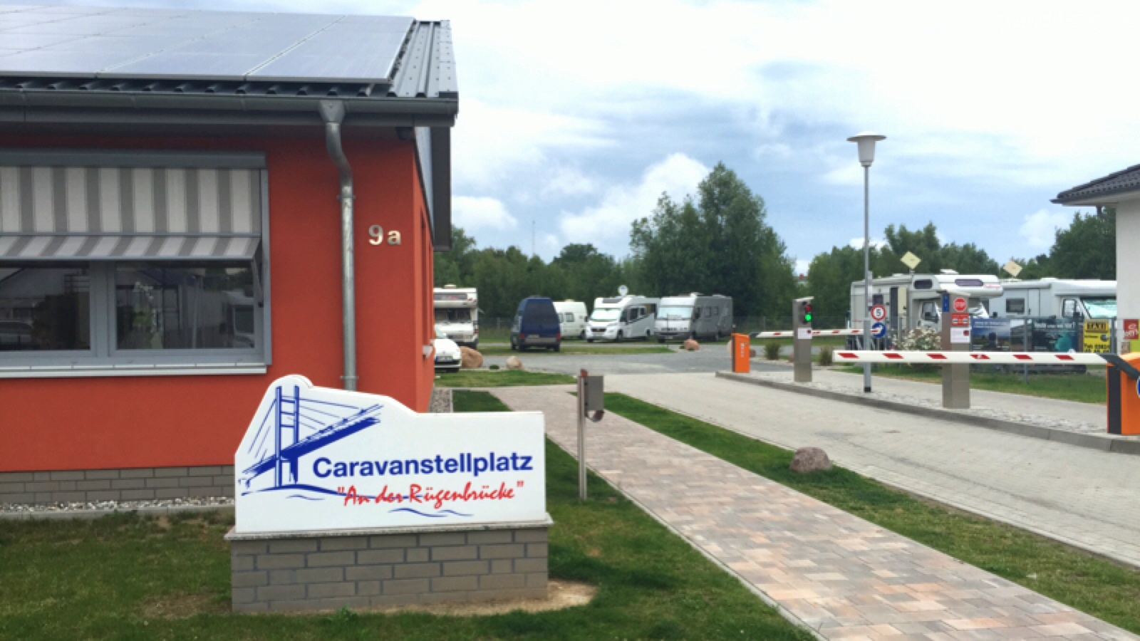 Als erstes nehmen wir uns Stralsund vor. Mit Bos ganzem Körpereinsatz erhaschen wir noch einen Platz auf dem Caravanstellplatz „An der Rügenbrücke“. Der ist pfuschneu mit Schrankensystem, Rezeption, Brötchenservice und Duschhaus, Ver- und Entsorgung (1€), Stromsäulen (50Ct/Einheit), 15€ pro Nacht. Auf der anderen Straßenseite liegt noch ein Ausweichplatz, auf Schotter und laut, da direkt an der Straße.